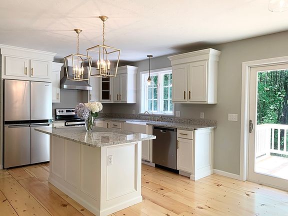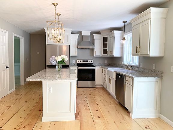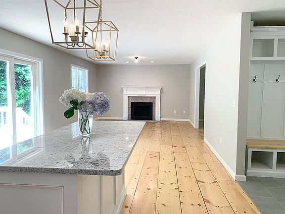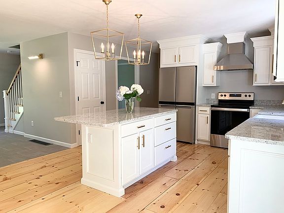 Completely remodeled 4 bedroom 2.5 bath colonial on a quiet dead end road. Large, inviting entryway with custom built in storage bench. Artfully designed kitchen with island, granite counter tops, brand new ss appliances, and farmhouse sink. Open concept family room with fireplace and deck overlooking peaceful backyard. First floor also includes a fully remodeled half bath with laundry hookup. Gorgeous refinished wide pine wood floors throughout. Upstairs offers a master bedroom en suite with walk in closet. Master bath includes soaking tub, beautiful double vanity, and tiled floor. Three additional good size bedrooms upstairs and a third bath with tiled floor. Two car attached garage, central air, walkout basement, prof landscaped, new roof, new furnace, and new hot water heater are just a few more things this house has to offer. Great commuting location close to the Mass Pike. A must see!