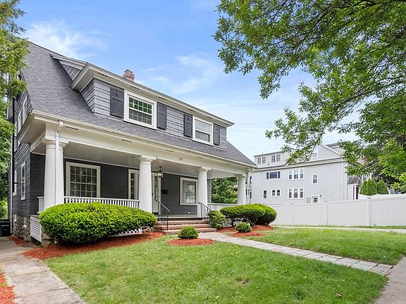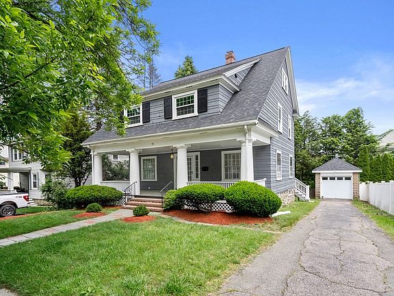 Charming center entrance colonial with majestic front columns, beautiful original detail, crown moldings, French doors, beamed ceilings & original classic fireplace mantel. This oversized grand home features brand new chef's kitchen with granite & stainless steel appliances & newly refurbished bathrooms. Family room off kitchen is ideal for entertaining. Five spacious bedrooms with all having amazing closet space & 2 walk-in closets! Freshly painted with neutral colors throughout entire home make it move-in ready. Three floors of living space feature refinished hardwood floors throughout & lots of natural light through windows on all sides of the home! Expansive front porch & large rear deck overlooking the back yard! Multiple areas for storage or expansion! Extra-large garage and long driveway for guests, beautiful private lot, new roof, updated electrical and new water heater. A short stroll to Hynes Field playground, Holy Name School, Joyce Kilmer School and Centre Street shops.