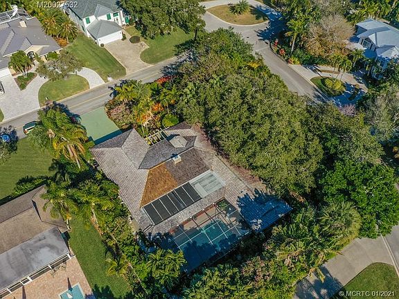 South Sewall's Point - This prime corner lot is just shy of a ½ acre and a gardener's dream. Nestled amidst a botanical oasis cultivated over 30 years with native and tropical foliage the 3 bedroom, 2 ½ bath pool home offers a spacious floor plan with 2600+ sf of living space. The property boasts total privacy whether you are walking the garden path or enjoying the pool and patio area. The interior of this home offers a large eat-in kitchen, family room, formal dining and living room, and three generous sized bedrooms. A bonus room off the master bedroom provides the potential for a fourth bedroom, office, craft, or game room. The open plan lends itself to year round indoor and outdoor entertaining. The large eat-in-kitchen is well equipped with a Subzero refrigerator, double oven, and large chef's island. A wood-burning fireplace adds to the warm ambiance of this home. High elevation with no flood insurance required the location of this property is a rare find.