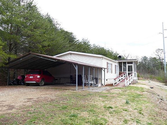 This home has many updates including a new roof, new stainless appliances, new pergo laminate waterproof flooring, new updated bathroom vanities, 2 additional electric fireplaces, new gas log fireplace and more. There is an awesome long range mountain view, level yard, fenced area for your dog, a large storage shed, an over sized 2 car detached carport , and a gentle front door access ramp for any handicap needs. You will just love this home with it's two covered porches.. End of the road privacy and just minutes from town..