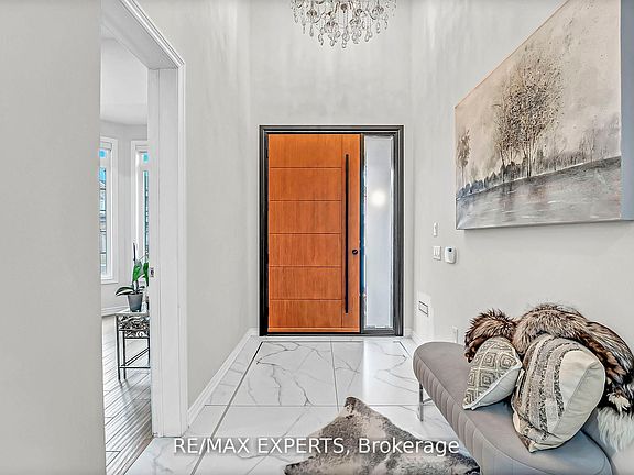 Hardwood flooringCustom fireplace wall unitUpgraded stairs and railingsInterlocked drivewayFront porchExterior potlights
