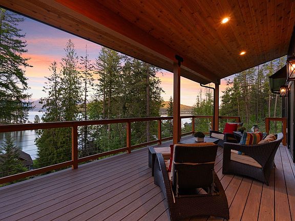 Welcome to your own private sanctuary in the heart of Sourdough Point, nestled among the mature trees overlooking Lake Pend Oreille. This custom Craftsman-style home built in 2022 offers a rare blend of timeless design and modern luxury in a setting of unmatched peace and beauty. Featuring 4 spacious bedrooms and 3 elegantly appointed bathrooms, this residence showcases an open concept living space filled with natural light. Step into a warm, inviting entry adorned with rich wood finishes. The heart of the home features a beautifully tiled and shiplapped gas fireplace, perfect for cozy evenings with loved ones. Expansive windows frame the lake views and forested surroundings, bringing the outdoors in and creating a serene, nature-infused ambiance throughout. The main floor primary suite offers a private retreat with an ensuite bath and generous walk-in closet. Upstairs, discover an additional living space ideal for a home office, media room, or guest lounge, 2 additional bedrooms and a large flex space. Outside, the expansive covered deck is your front-row seat to unforgettable sunsets and quiet mornings overlooking the lake. Or simply take in the view from your private hot tub! Just above the home, you’ll discover a fire pit area and flat yard space ideal for entertaining, play, or simply relaxing under the stars or room to build a future detached garage. As a resident of Sourdough Point, you’ll enjoy exclusive amenities on your own private island, including your own boat slip in the private marina, park and sports courts, creating a lifestyle that blends recreation with complete tranquility. This is more than a home; it’s a retreat, a gathering place, and a legacy waiting to be lived.
