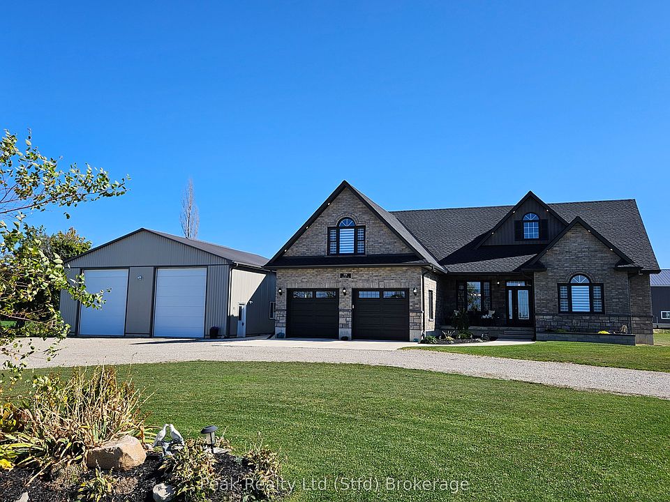 Welcome to your dream home! This stunning 2-year-old custom-built bungaloft offers modern living in a serene country setting 2 minutes from Lake Huron, situated on a sprawling 1.5-acre property, this home boasts 3711 sqft. of living space, 3+1 bedrooms and 3 full bathrooms, providing ample space for your family. As you step inside, you'll be greeted by an open-concept main floor featuring beautiful hardwood floors. The professionally designed, gourmet chef's kitchen is a showstopper, complete with granite countertops, and a large island perfect for entertaining. For added comfort, the tile floor in the kitchen and the two bathrooms have in-floor heat. The adjoining family room offers vaulted ceilings and a gas fireplace! The finished basement is an entertainer's paradise, featuring a home theatre, custom wet bar, and plenty of room for an in-law suite. Outside, you'll find a large double-car garage, a covered front porch perfect for enjoying quiet evenings and fabulous sunset views, and a private, tranquil backyard with a covered deck, patio BBQ, hot tub, and fire pit. The large driveway leads to a 2000 sq ft. insulated, heated shop with 14 high doors, large enough to store trucks, vehicles, boats, and RVs. The property also comes with a backup generator. Located just a short drive from Goderich and the stunning beaches of Lake Huron, this property offers the perfect blend of country tranquility and convenient access to amenities. Don't miss your chance to own this one-of-a-kind home! Click the video link under Property Information to take the virtual tour. Call for more information.