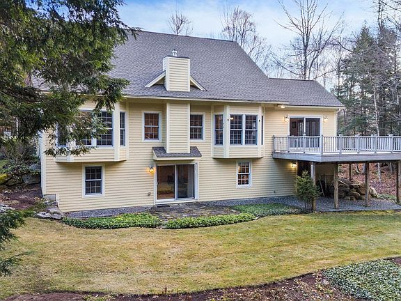 This charming 3-bedroom, 3-bathroom home is located in the peaceful Great Pines Association, offering a blend of in-town convenience and serene, residential living. The main level features a spacious primary bedroom with an ensuite bathroom, along with an open concept dining and living room that includes a cozy gas fireplace—ideal for gathering with family and friends. The large family room opens onto a deck overlooking a beautifully landscaped backyard with stone patio, woods, gardens, and a babbling brook, creating a private oasis just steps from your door. An office on the main level provides a dedicated space for working from home, and the kitchen is a chef's dream with natural wood cabinets and high-end Viking appliances. The finished walk-out lower level offers a second family room, two additional bedrooms, one with an ensuite bathroom, providing ample space and privacy for family or guests. This home is conveniently located near shopping, dining, and theater, as well as the scenic attractions of Mt. Sunapee, Lake Sunapee, Little Lake Sunapee, and Pleasant Lake. Don’t miss this opportunity to own a home in the desirable Great Pines neighborhood—where luxury, nature, and convenience meet.