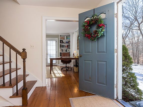LOOKING FOR CHARM? This 4 bedroom Colonial is loaded with wonderful features: wide plank floors, oversized Family Room (with wood stove and wet bar) AND oversized Living Room (with large wood burning fireplace), brick walls in kitchen and 3 bedrooms upstairs. Master Suite has a beautiful renovated full bath, fireplace and walk-in closet. 4th bedroom is part of In-Law apartment above the garage. Situated on 1.67 acres, current Sellers further upgraded with: new generator, new propane tank, new Navien Heating, all new Anderson windows, new "split system" units, new well pump, new shelves in office and new shed outside. Added bonus: The In-Law Apartment above garage is perfect for long term guests, au pair or rental income! This home checks all the boxes: Location, curb appeal, upgrades and charm.
