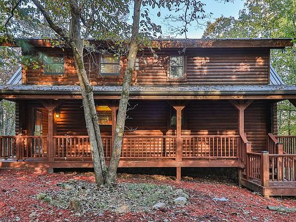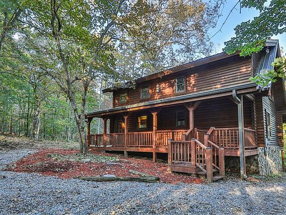 Not like the others! Take the long driveway with iron gate leading to a large parking area at this well-built, low maintenance lodge style home with beams & ties and made of cypress logs, so no termite worries! Not an inch of sheetrock, real hardwood floors with subfloors made of 2 thick treated lumber. Two very spacious bedrooms w/ 2master ensuite. Upstairs you will find a cat-walk & large loft for sleeping or use for entertainment. Enjoy the seasonal view (or cut some trees to have a year round Springer Mountain view) from the freshly stained 24x8 front screened porch and listen to the rushing water of Stover Creek. The back porch is 36x8 with two gates to keep pets or children safe. Secluded but not isolated in a community with wide roads and common areas that include pavilion, picnic tables, fire pit, and swing benches by the trout stream a few yards from the house.