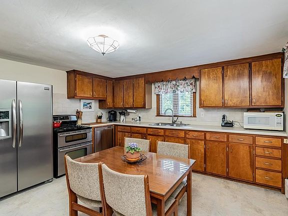 Your own Private park! This 4 Bedroom 1 & 1/2 Bath home Is so charming! Many updates throughout, Enter through the adorable side porch with Brick wall & paneled ceiling. Eat in Kitchen is spacious with newer Stainless steel appliances, including a dual fuel stove, gas cook-top/ electric double oven . Lots of cabinets for storage. Living room with mantel & brick fireplace sparkling wood floors throughout the home.Two Bedrooms on the first floor currently used as an Office & Dining room. Updated first floor bath with tile surround shower/tub. The front porch was recently added with electric & insulation for seasonal enjoyment. Upstairs you will find a modern updated half bath.The Main Bedroom is currently upstairs with wood floors, closet. Bedroom two has wood floor, closet, and a window seat. This home offers versatility. Basement is full and ready to be finished,access to Garage. The yard offers Apple tree, blueberry bushes, three ponds that bring nature to you! Easy access to Ma.P
