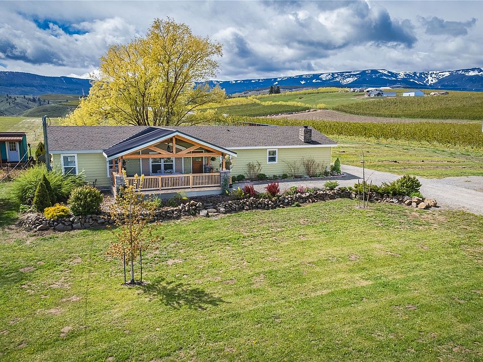 Quiet country living, just minutes from town and recreation, on a flat 4.47 acres with views all around. Plenty of space to garden, play, raise animals, and enjoy the sunsets. Home is single level 3 bed/2 bath- features an updated kitchen (granite counters, newer appliances), 2 spacious living rooms (or use one as large dining room), built-in office nook, beautiful stone surround fireplace, and oversized front and back decks. The layout makes the square footage feel larger. The fenced and irrigated pasture, with covered 3 stalls, is ready for horses. Backyard is fenced with large shade tree and patio with fire pit. Versatile shed, finished inside with power, is perfect for a hobby or workout studio. Park the toys or tinker in the 30x40 shop