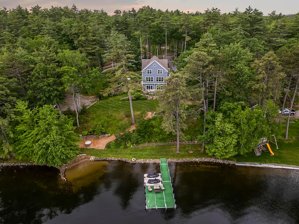 Square Pond perfection! Everything you could want on Square Pond, a comfortable three-bedroom home nestled into a private neighborhood, offering 200' of lake frontage with a private beach, boat dock and float. Highlighted by beautifully landscaped grounds built into the hill with lush gardens, custom stone carved bird baths, stone walls and grassy knolls. Multiple outbuildings along the water provide storage for all your water toys, there is even a recently finished four-bay garage on the back of the property with a one bedroom accessory dwelling unit above. If you are storing cars, boats or even a motorhome, the high ceilings can accommodate! The main house features a comfortable main level, the kitchen is open to a cozy living room, taking advantage of unobstructed lake views through large picture windows. A bedroom is conveniently located on the main level with a beautifully tiled bathroom just across the hall. The second level of the home features two additional bedrooms, one being a spacious primary with en-suite bathroom, walk-in closet and not to mention the views of Square Pond! The lower level of the home features a newly finished interior complete with second kitchen with island and dining space, living area with wood stove, full bathroom and ''coming soon'' a Bredabeds Horizontal Murphy bed. Double sliding doors lead you to a patio overlooking the landscaped grounds and the lake beyond. The newly constructed four-bay garage features an open concept floor plan of 800 square feet with a custom kitchen, living room, spacious bedroom and full bathroom. No detail has been overlooked, electrical has been installed for motorhome hook-up as well as a dumping station, separate septic systems and wells and two whole-house generators. Truly one-of-a-kind opportunity. Docks and dock furniture are included with the sale. Come enjoy your summer on the shores of Square Pond!