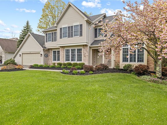 appliances, solid surface countertops, den/study, 2 1/2 baths, 1st floor laundry, beautiful foyer, hi efficiency furnace 2014, water heater 2014, central air 2017, roof is not original but age unknown. Electric charging hookup in garage for electric vehicle ..