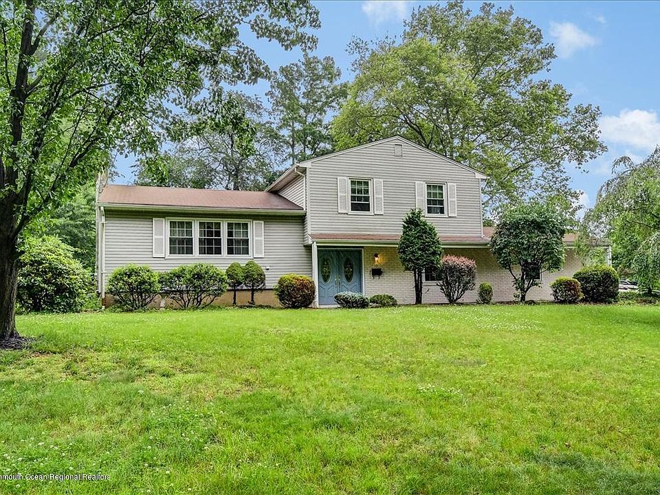 This large home is packed with value! 4 spacious bedrooms, spacious living room with gleaming hw floors, picture window, private patio, family room w/ fireplace and sliding doors, a large partially finished basement w/storage, a garage, granite ctps in kitchen, newer bathrooms, close to GSP, route 18 schools, shopping, parks and beaches....all in lovely Lincroft