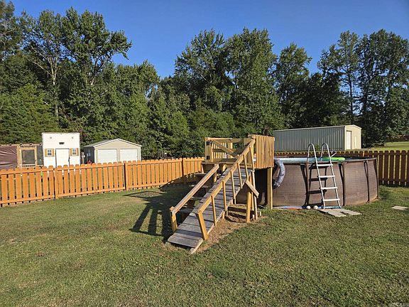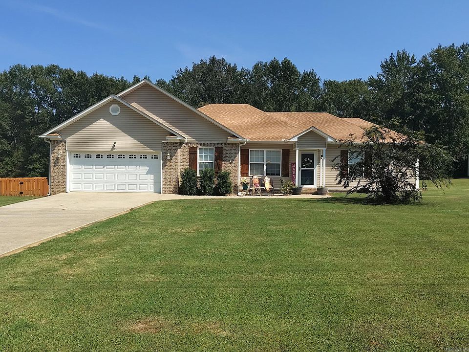 Nicely updated 3 bedroom, 2 bath home with 2 car garage with well over an acre yard. Spacious yard includes privacy fence, patio, chicken house, 18' above ground pool & a 20x20 shop with 2 rollup doors. The yard goes into the trees at the back for privacy. Kitchen remodel includes new granite countertops, new sink & faucet & new dishwasher. Several shiplap accent walls around the house, new laminate flooring in living room & halls. The garage has a recently installed Mini split to regulate temperature & the architectural roof was replaced in 2024 & the water heater was replaced in 2023. It also features gutters, a tray ceiling in living room & a separate laundry room. Appointment only.