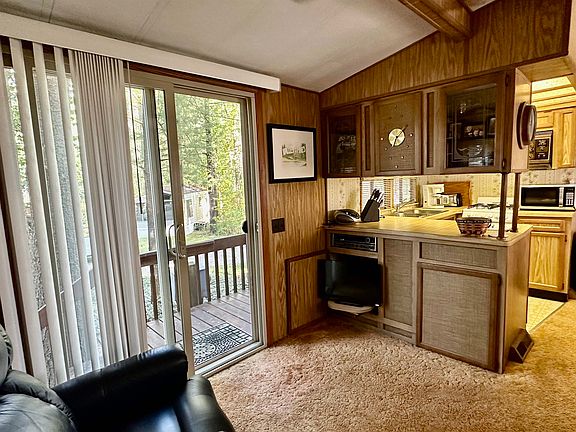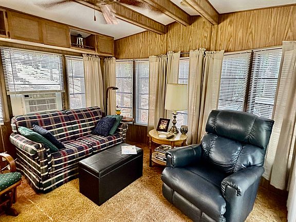 Right on the edge of Lake James Chain of Lakes, Valley Of The Pines is a gated seasonal recreational vehicle park Lots are situated around Lake Eldo where you can relax and enjoy nature or socialize at the club house. There is so much to do like fishing, playing basketball, horseshoes or shuffleboard. You can also paddle boat and there is even a playground for the kids This single wide one bedroom will be totally furnished inside and out with the sale. This home is on a large lot with beautiful water view and includes a storage shed for lake toys etc. Ample windows provides lots of natural lighting. This wooded lot provides lots of shade but if it gets muggy the window AC easily takes care of that. HOA is $650/year and includes the water/sewer.