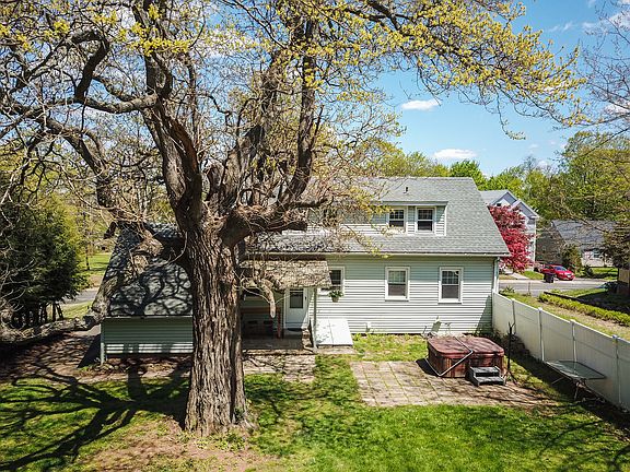 Great Cape in a central location with lots of updates throughout. Bright natural colors and plenty of closet space in every room. Inviting kitchen with tiled floor and new new stainless fridge opens to back patio. Cozy living room with stone fireplace with insert. First floor master and 3 more bedrooms. Upstairs has half bath and 3 rooms. Private backyard with patio entertaining area under pergola and great shade tree. Yes, Hot Tub is included. One car garage with workshop. Public Water and sewer. New as of 2011 - Roof, Boiler, Oil Tank, Garage Door. This cozy home is move in ready! See Virtual Tour link for Floor plan and more photos.