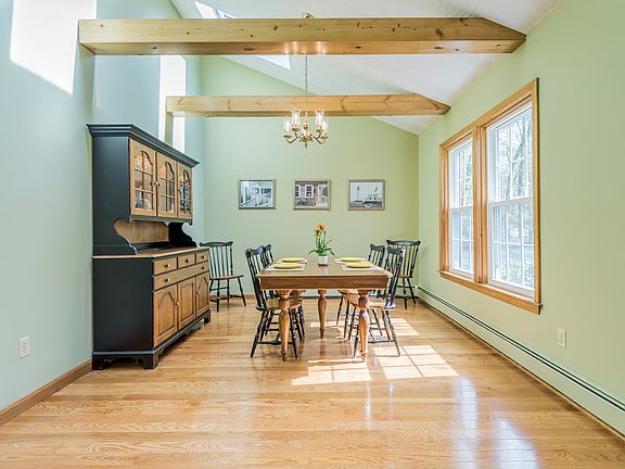 Lovely, classic colonial provides an impressive yet comfortable place to call home. You will be wowed by the condition, layout and grounds! Perfectly sited back from the road, it enjoys privacy & serenity whether inside or out. Updated Kitchen w/ new quartz counters has slider to back patio which is flanked w/ woods. Cathedral ceiling Dining Rm beams with sunlight through 2skylights, Living Rm has wood-burning FP & bay window & both rooms have beautiful hardwood floors. Spacious Family Rm & Home Office plus half bath/laundry & Foyer w/ parquet floors complete the first floor. Second floor has 4 spacious bedrooms & 2 full baths. Title V approved septic, roof (2010), boiler (2006), windows & skylights (2010) & central vac. Two car attached garage leads to adorable breezeway that becomes a screened room for those warm summer nights. Charming patio is perfect for summer dining! For ease of living and entertaining, this home is a must see!