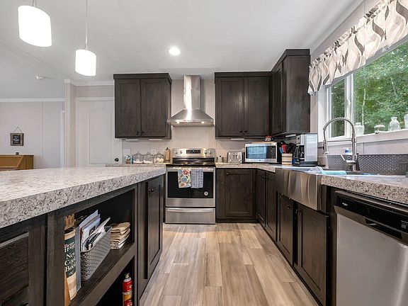 Beautiful 4-bedroom, 2-bath 2022 residence boasting expansive living and family rooms designed for both sophisticated entertaining and relaxed everyday living. The modern kitchen features a center island and a generously sized pantry, perfect for culinary creations, while a separate laundry room provides added convenience. Elegant vinyl flooring flows seamlessly throughout most of the home, complemented by central air and heat for year-round comfort. Step outside to the 16 x 16 covered back porch and savor tranquil water views, or make use of the 8 x 10 storage shed for a functionality. Additional features include underground utilities and Xfinity fiber optics throughout the neighborhood. This exceptional home harmoniously blends modern living with serene natural beauty—truly a must-see property. ALL MEASUREMENTS APPROX!
