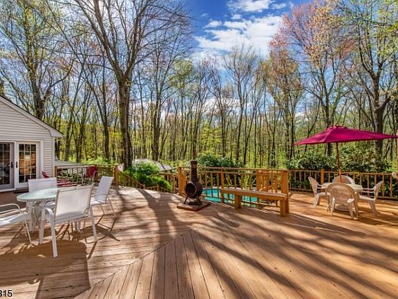 Welcome to your very own private resort! Serve poolside beverages from the cabana, relax among the luxurious landscaping, and lounge or entertain on the expansive multi-tier newly-stained deck. Pool is heated to extend the season, the cement walls were recently resurfaced (2019), and also includes new tile surround. Bring the party indoors into new (2018) central air conditioning and a whole-house fan. In cooler months, snuggle by either of two fireplaces, or bake treats in the wall oven in the granite-top kitchen. Newer flooring in many rooms. Roth oil tank in basement. Circular driveway and 3-car garage. All of this in beautiful Long Valley with its highly-rated schools. House set well back off the road. Come visit, you'll want to stay!