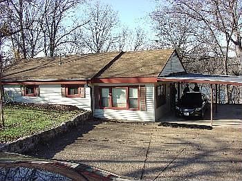 MLS#3070786 Price just reduced! One level living throughout. Newer eat-in kitchen, large living room with beamed ceiling, enclosed rear porch and extra large lot with 85' lakefront in a protected cove. Carport and gentle drive. Osage schools. $179,900