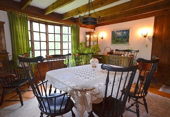Live the good life from this Circa 1780 Antique Cape offering details and craftsmanship from an era gone by. You are welcomed by a lovely sitting room with a stained glass window that leads into the kitchen with breakfast bar, open living and dining room with ample windows and beautiful beamed ceilings. There is a first floor bedroom currently being used as a den. A very sweet original wood stove graces the Home filled with love and charm. The main floor has a full bath and offers sliders to a deck and large backyard. Upstairs are two lovely bedrooms with beamed cathedral ceilings, wide pine wood floors, a dressing area and a full bath. On over 6 acres you are away from it all, yet near Lake Wyola State Park. The grounds are home to many mature plantings and is the perfect place for play and entertaining.