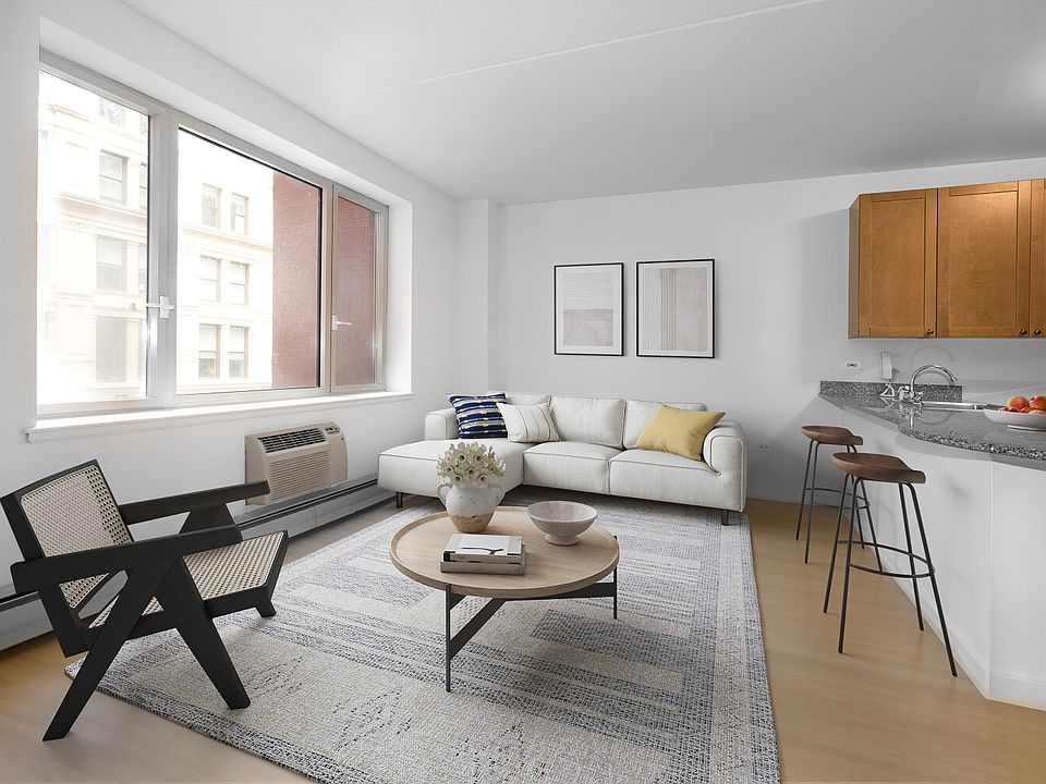 SHOWINGS BY APPOINTMENT ONLY. Renovated north facing spacious one-bedroom with breakfast bar, granite countertops, custom cabinetry, and stainless steel appliances. With an efficient layout, great closet space and quiet exposure, this one-bedroom home is both comfortable and convenient. Saranac is a post war 24-hour doorman building with two roof terraces, fitness center, laundry, and in-house Resident Manager. Security Deposit: At Manhattan Skyline, we are always looking for ways to make your life easier. Pay a small monthly fee to The Guarantors, and never pay a security deposit again. The Guarantors directly insures your landlord for your apartment, so you dont need to worry. Lease Guarantors: We make it easy for you to secure a lease by working closely with third-party guarantors such as Insurent, and The Guarantors. Contact our On-Site Leasing Agent for more information. Images are representative of our apartment renovations; are virtually staged and may not be of the actual unit. DISCLAIMER: Please be advised that Manhattan Skyline Management Corp , Landlord, and its affiliates, utilize exclusive brokers/agents in connection with all rentals of real property. Prospective renters, their brokers and/or agents understand that neither the landlord nor landlords agents will charge or collect fees to a prospective renter in connection with this property except for administrative and/or application fees as permitted by law. Nor will landlord or Landlords Agent assume responsibility for any brokerage fees incurred by a prospective renter in connection with this property. Any broker/agent who contacts management in connection with this listing, who is not the exclusive broker is not the landlords broker/agent and will not be paid by landlord. This listing is being advertised to prospective renters. This listing may not be re-published without the express written consent of the landlord FEE DISCLOSURE: Please be further advised that tenants may incur fees and charges in connection with the rental of Landlords properties pursuant to the terms of the lease agreement, including, but not limited to, parking, amenities, late fees, pet fees, insufficient funds, and third-party utilities. Located at Broadway between Worth Street and Catherine Lane, Saranac offers a variety of one, two and three bedroom layouts. Saranac apartments have 9 ceilings and contemporary kitchens featuring large granite dining counters with cherry finish birch cabinetry. Many apartments enjoy spectacular views of the historic Clock Tower Building and the Woolworth Building. Saranacs top three floors provide large two and three bedroom homes with additional amenities such as marble baths, washer/dryers and real wood-burning fireplaces. Two top floor penthouses offer extra high ceilings, skylights, huge terraces, greenhouse windows and private elevator access. Building amenities include 24 hour doorman service, attended garage, a fully equipped exercise facility with an adjacent laundry and exterior recreation space, as well as an outdoor sundeck on the top floor. Fiber optic wiring offers high speed Internet access, multiple phone lines and cable television.