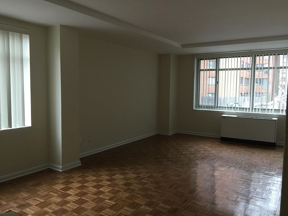 Recently renovated corner efficiency in great building. Bright and spacious unfurnished studio with windows on two sides. One of largest studios in building. Pleasant view of the courtyard. Parquet wood floors. Renovated kitchen with granite countertops and all new appliances, including dishwasher. Renovated bath. Walk-through closet, plus an entryway closet. All utilities included in rent. Located in Claridge House in Foggy Bottom. Rooftop swimming pool open May to September with spectacular views of Washington and Rosslyn. 24-hour front desk. On-site management office and maintenance staff. Fitness and business centers. Two blocks from Foggy Bottom metro station, Trader Joe's, Whole Foods Market, Watergate complex, Kennedy Center, George Washington University and Hospital, K Street and Georgetown shops and restaurants. Five blocks from World Bank and State Department. All utilities included in rent (except telephone, cable, and internet). Waived move-in fee. Very competitively priced. One year lease or longer, if desired.