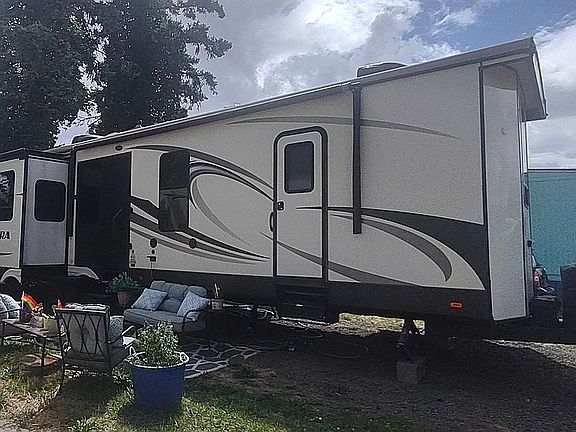 Cute and cozy destination trailer in all ages park in Albany. Built for full time living, this model features 2 bedrooms, 1 bathroom. As you enter, to the left, you'll find a large open concept living/kitchen/dining area. The living room features pine shiplap ceilings, a cozy fireplace, surround sound audio system, and rustic farmhouse accents. In the kitchen you will find butcher block counters, an apron front farm house sink, dishwasher, custom vent hood, convection microwave, real tile back splash, and full size residential double door refrigerator with drawer freezer and ice maker. This unit comes partially furnished (including two tvs!) And is equipped with washer dryer hookups, a built in vacuum system, large walk in shower, tons of cabinet space, and 11 foot ceilings. The master bedroom can accommodate a king size bed and features a large closet. This until comes with a warranty good until 08/2025. Space rent is $750 and includes water, sewer, and garbage. Lot includes a shed. You can keep it here or move it to your location or choice!