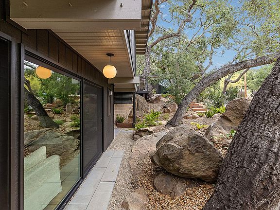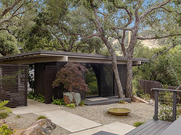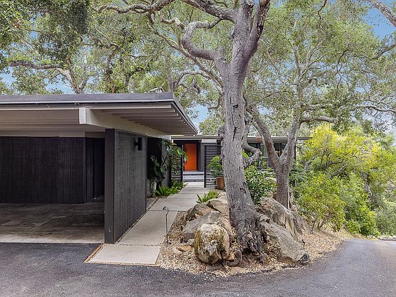 This beautiful mid-century 4-bedroom, 3.5-bath home is centrally located in the Mission Canyon area close to the Botanical Gardens, Santa Barbara Mission, Museum of Natural History and the many trails in the surrounding foothills . Views of the Mission and ocean are enhanced by the wonderful ringing of the Mission bells. Amenities include a detached spacious office/bedroom, wood/tile flooring, central air conditioning, outdoor spa, large patios and decks, updated kitchen and bathrooms. The completely updated home comes with large picture windows throughout filling the home with light and offering beautiful views of the surrounding mature oak trees. This partially furnished home offers the best of mid-century design and is close to everything that Santa Barbara has to offer.