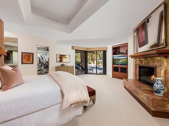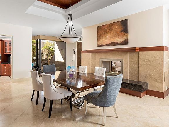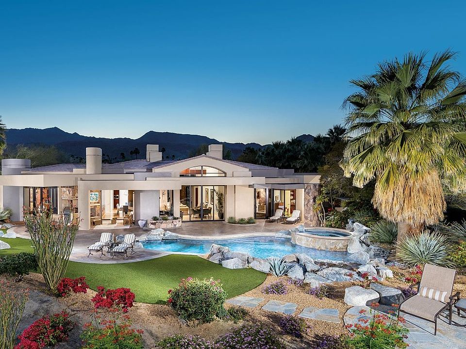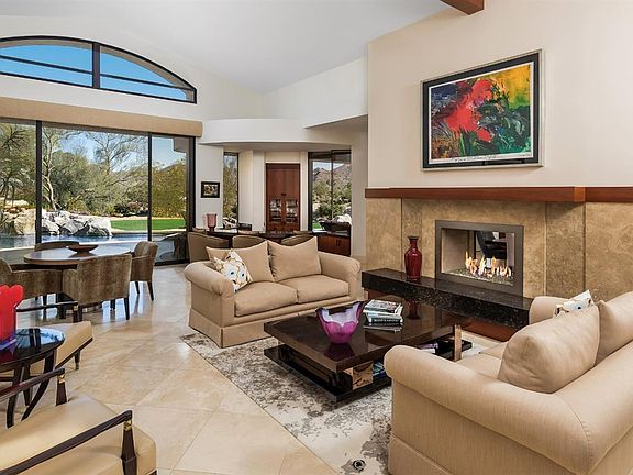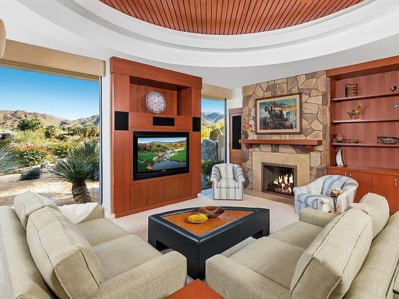 This custom residence offers elegance with a desert casual flair. Private gated courtyard with stacked stone and lush native landscape are the entry to this beautiful home. The living room offers inviting space with vaulted ceilings and clerestory windows. The sliding glass doors open to the outdoor living and provide views of the pool and golf course. The sit down wet bar also enjoys the views beyond while offering a casual spot for guests to gather. A double-sided granite fireplace floats between the living and dining room creating ambiance for an intimate area to enjoy meals. A separate family room offers comfortable seating, stacked stone fireplace, media center, morning room with sliding glass doors to the patio and fairway view. The family room is open to the high-performance kitchen providing a casual gathering place for family and friends. Master suite features granite fireplace, media center with access to pool, spa and amazing views. Three interior guest suites.