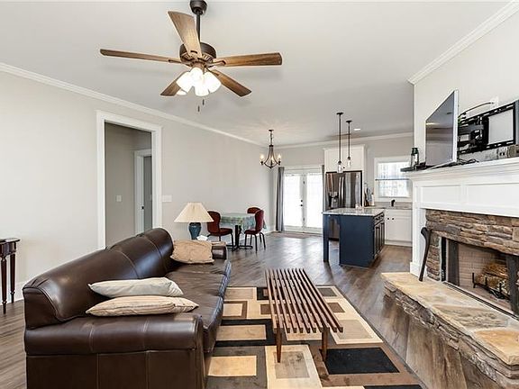 1.77 acres- Farmhouse ranch -Main level has master suite with spa bath and walk in closet. 2 additional bedrooms, and an open concept living dining and kitchen with black stainless, round out the main level! The attached oversized garage will accommodate your larger truck! There is a bonus room and full bath over the garage that would make a great teen suite or an office away from the family for todays telecommuter! Very pretty lot has cleared area near the home and woods around with a spring and small creek at the back of the property.