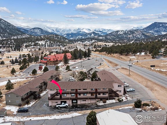 Check out this cozy and meticulously cared-for 2-bed, 1-bath condo situated in a multi-unit building. Enjoy the perks of being an end unit, offering an abundance of privacy & breathtaking views of the majestic Continental Divide. The HOA conveniently covers all utilities, excluding electric, internet & cable. Additional amenities include shared laundry facilities and extra storage in the basement. Perfectly positioned within walking distance to restaurants, Safeway, and downtown. A scenic path conveniently crosses right in front of the building, providing easy access to the 9-hole golf course and lake Estes. Plus, the strategic location ensures a quick less-than-10-minute drive to Rocky Mountain National Park. Please note that the rooms are virtually staged, adding a touch of imagination to envision your ideal living space.