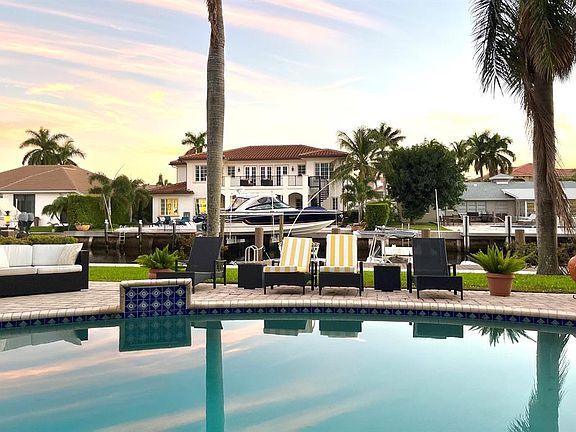 Seasonal or Annual, luxury waterfront living. A short walk to the beautiful Atlantic ocean, or take a quick drive to the vibrant and popular Atlantic Avenue and downtown Delray Beach. A stunning deep-water, pool home offering a 90' dock in the highly desirable Tropic Isle neighborhood. Meticulously maintained with an open and airy floor plan, providing canal and sparkling pool views from every room. Featuring a sumptuous master suite and bathroom, plus an additional three bedrooms, all en-suite. Each bedroom also provides outdoor access via private wrap around balconies maximizing water views. The home additionally features a large, private office/tv/game room, and a spacious two-car garage. A quick boat ride along the intracoastal waterway leads to