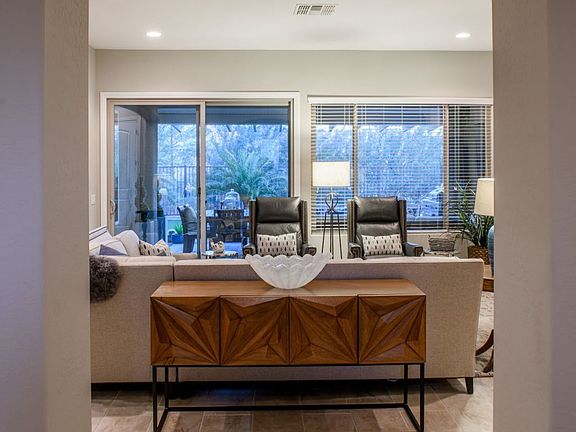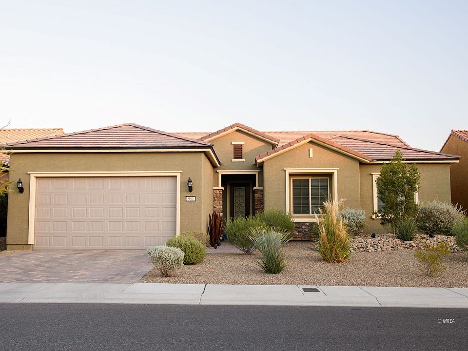 SIDS Paid. Sun City Pursuit - beautifully maintained. This home has it all, luxurious finishes throughout, tons of storage everywhere, beautiful landscaping front and rear. The views are some of the best 19 of the Virgin Mtns! Why wait for a new build when you can move right in and have the high-quality finishes you desire? The GR has a large window and patio dr that overlook the private patio with an extended patio cover. The GR, Kit, Dining, and Sunroom are expansive space that is perfect for large gatherings or intimate evenings. There is a large center island in the kitchen plus tons of extra cabinet storage. The built-in fireplace and shelving add drama and character. Spending time in the Sunroom will be a favorite spot, perfect for reading or computer time. Your guests will enjoy their privacy with their own Den, Bedroom, and Bath. When not used by guests the Den is a perfect get-away. The Main Bedroom is large enough for a king bed and sitting area, another little sanctuary to enjoy the view. The Bath has a luxurious shower with a seat, rain shower, and hand sprayer. The Garage is extra large 20x26, plus, 90 sf of storage. Check out the video!