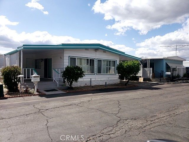 Calimesa Senior park This home has been re done with textures walls, dual paned windows. newer counter top in kitchen , newer cupboards, flooring... It has A/C Comp roof was put on last year. Newly painted and nice lattice work on carport and porch. Full front living room with a view also has shutters in the living room. (Serial #10303U/10304X)