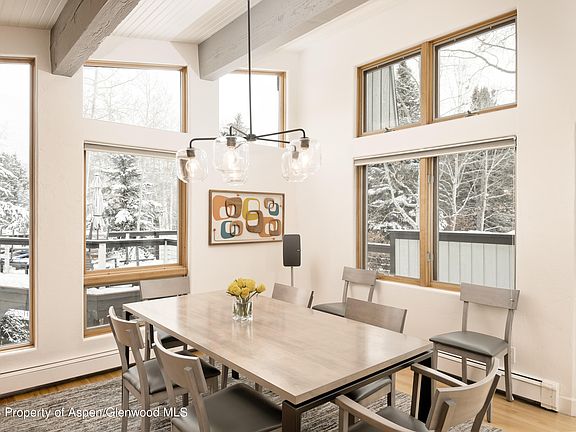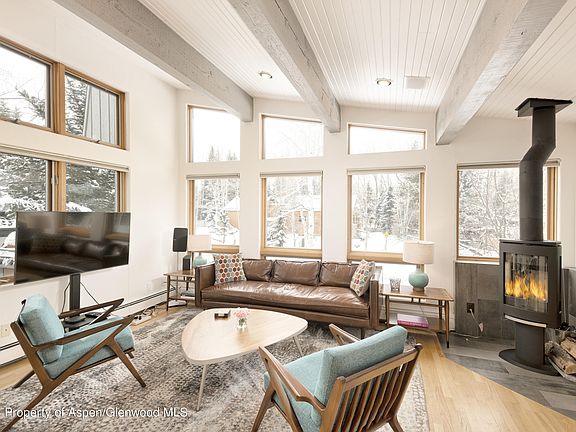 Light and bright, newly refreshed 3-level duplex. This mid-century modern inspired, well laid out home is perfect for a family or group of friends. Separate living room and den area for entertaining or watching tv. Each level boasts separate bedrooms that allow for privacy and space. The top floor enjoys 180-degree views from Sunnyside to Highlands, with generous natural light. Surrounded by trees and an elevated deck, the living room, dining area and kitchen have the feel of a treehouse. Amenities include AC in the living room and master, a hot tub, wood stove, fenced-in yard and a covered carport. Located close to the Rio Grande trail and the Aspen golf course. Pet friendly and right on the bus route. Available short term or long term. Please inquire for short term rates.