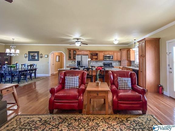 Gorgeous Farm in North AL! Beautiful like New Brick Home with attached 2 car Garage, 40 ACRES, Pond, Storm Shelter, small Orchard, and Detached Garage/Workshop with 3 rooms on main level and stairs to an open 2nd Floor! Inside the homes features a perfect Open floor Plan, Gas Log Fireplace, Spacious Isolated Master Suite, Large Laundry, Extra Hall Closet Storage, Office, Spacious Front Porch, and Covered back Patio! Enjoy Peaceful privacy and seclusion on this Farm with Unrestricted Acreage!