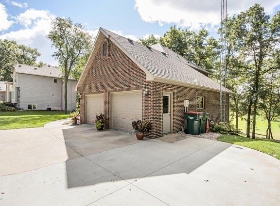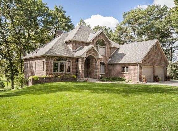 Stylish Tudor brick home on a lovely landscaped one-acre golf lot with many shade-casting trees. Yard fully equipped with an irrigation system, full in-ground sprinklers and a large tool shed around back. A full one-car garage beneath the home perfect for the golf cart or extra toys! Oversize two-car garage attached to the home with amenities including