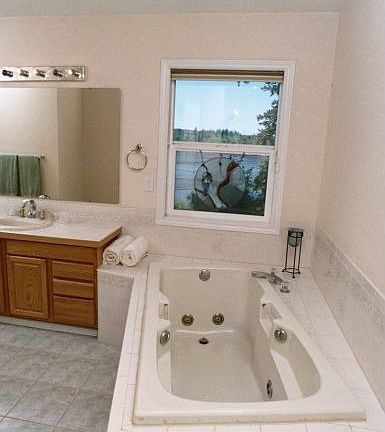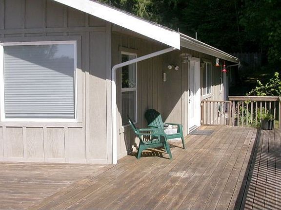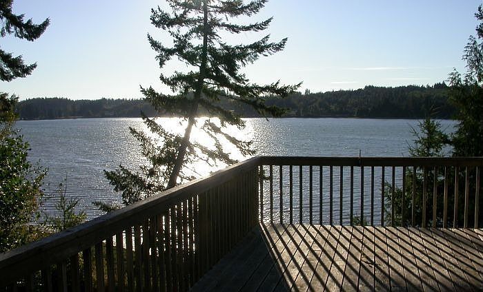2,778 SF contemporary on saltwater bay. Natural lighting; vaulted ceilings; oversize thermopane windows look out onto bay. Master-on-main design, on same level as 950 sq' deck. tile floors. wood floors in living room. Heat pump & AC, with low utility bills. Jetted tub in master suite; propane fireplace, propane stove (backup heat) in large family room. Cook's kitchen with JennAir range , apliances. All 3 bedrooms look out onto water. Laundry/mudroom & bonus room. Wired for backup generator. 788 sq' 3-car garage It’s Quiet, private, with lots of wildlife and native plants on lot. House sits very close to tidelands and water, above low bank (10-12 foot) with stairs to beach. Very Quiet and Restful.