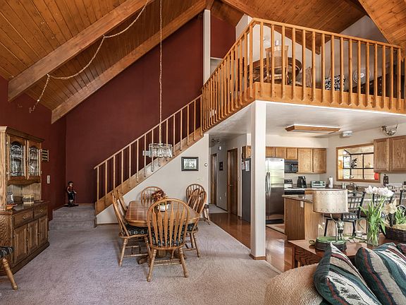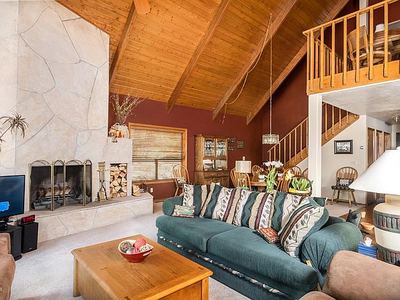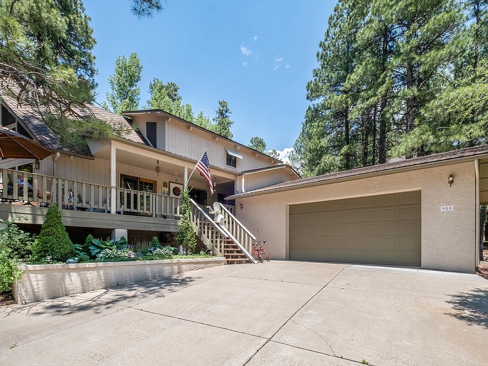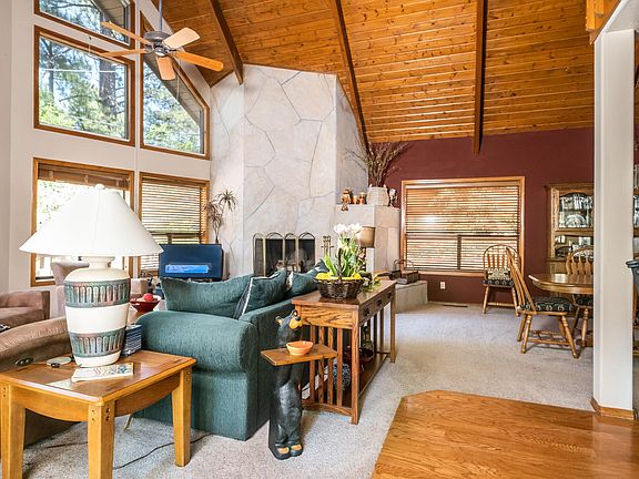Elegant two story chalet tucked into the large ponderosa pine and aspen trees. Enter into the oversized concrete driveway leading to a block oversized garage measuring 26 deep by 30 feet long. Wrap around deck, partially covered. This home offers propane central heat and Air Conditioning. Updated kitchen with granite counter tops. Some newer appliances. Large flagstone fireplace with gas starter. Dining room that can sit 12 or more. Master bedroom on the main floor with an extra large walk in glass blocked closet. Upstairs has two large bedrooms, bath with double sinks, walk in shower. Loft that overlooks the living room area. Off the main hallway is a 1/2 bath and a utility room. Closing to occur on Oct 30th, 2020.