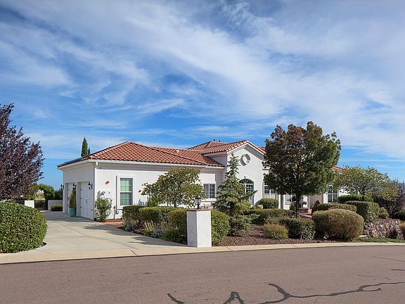 Prepare to be thoroughly impressed by this Mediterranean-Style single level home that backs to State Land. Soaring ceilings welcome you in, but the tall picture windows through the wine tasting room creates the wow factor with the stunning views of the San Francisco Peaks, past the water feature, lush lawn and the open view to the State Land. Truly one of the most private and picturesque settings in Pinon Oaks. This one level 4038 sf home also boasts of a 4 car garage and 2 driveways for all the toys. Custom touches adorn this home from top to bottom. Exceptional kitchen features include Viking Pro gas range with 4 burners, griddle and grill feature, proofing rack, pot filler, full size separate fridge and freezer plus dual zone wine fridge. Master bedroom has his and hers bathrooms.