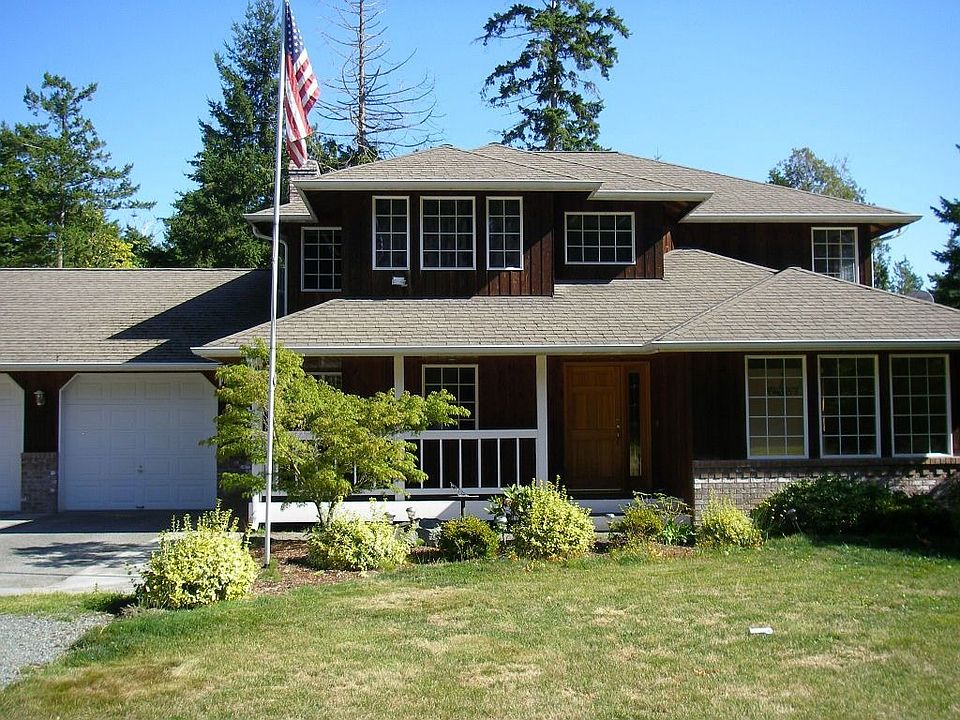 5 acres in beautiful Camano Island with view. Spacious 3 bdrm, master with walk in closet, One panel arched cabinetry, white appliances, nice size island with hardwood flooring. Large utility room with upper cabinetry/storage and separate wash tub. Nice shelving in garage with separate room off side. Brick arched wood stove cubby. Coffered ceilings with bay window in dining rm. Double vanity and jetted soaking tub in mst bath. A great house to call your own! Show quickly this will go quick.