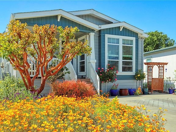 Gardener's delight!! Lovely 3 bedroom manufactured home boasting a private & serene patio tucked away in the spacious back yard garden. Bolsa Chica Mobile Estates is a resident owned senior community backing up to the Arroyo Grande Creek and within walking distance of the charming Village of Arroyo Grande. Owners enjoy the benefits of NO SPACE RENT and low HOA fees. As you approach the front door, you are greeted with a darling front porch with room for a couple of comfy chairs to enjoy our perfect Central Coast weather. Upon entering this beautiful 2012 built home you will find everything you need including an open floor plan with new wood-look plank vinyl flooring, 9 foot ceilings, cozy electric fireplace, large kitchen with updated stainless appliances including NEW refrigerator that stays, plenty of storage and a cheerful dining area, inside laundry room including washer and dryer. The master bedroom has a walk-in closet and views of the flowers and trees in the private garden. The large master bath has ample storage, double sinks, and spacious walk-in shower. Located just 4 miles from the ocean and beaches, this lovely home is bursting with quality and beauty and is a must see!