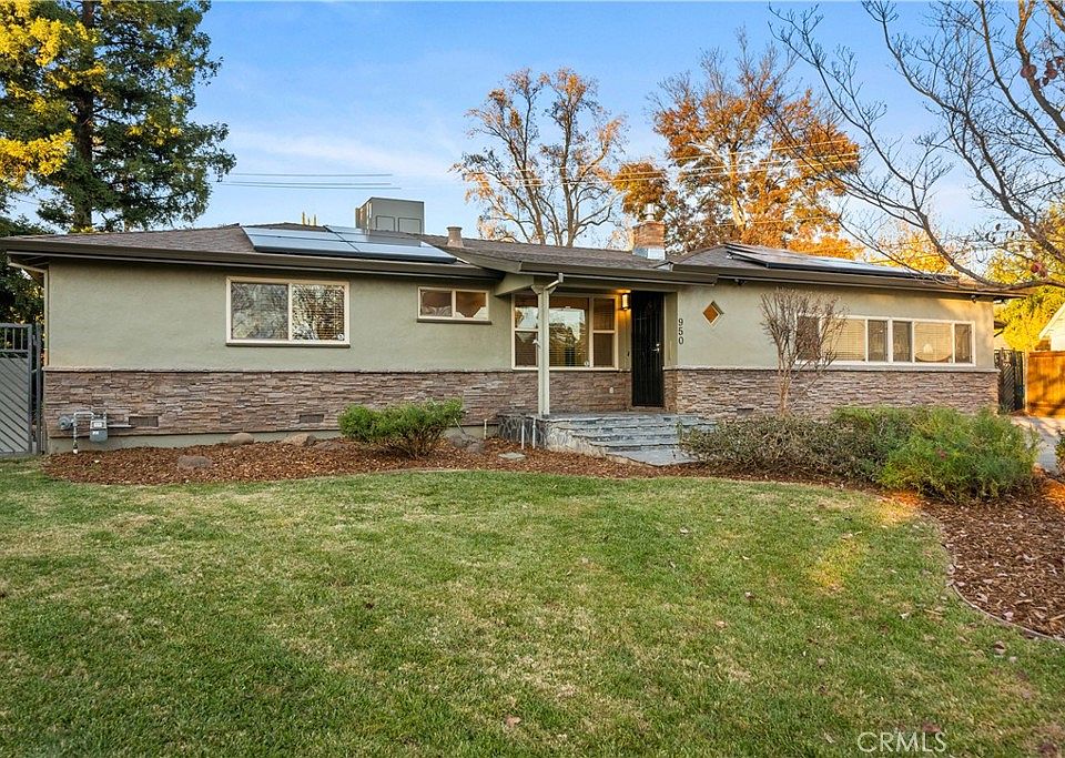Ready to go!! This home is situated on a cul-de-sac street close to Lower Bidwell Park. It was painted inside and out in preparation for sale. In addition to the 1,486 sf of living space, there is a 216 sf attached bonus room with indoor laundry hookups and a shop sink. The original hardwood floors are in great condition. Roof and HVAC were installed in 2019. The 7.1kW solar energy system has a 13.5kW Tesla backup battery. The garage conversion was tastefully done by previous owners and provides a perfect room for entertaining or an additional bedroom. The kitchen features granite countertops, gas range and lots of extra cabinetry for all your pantry items. The home is equipped with a tankless hot water heater, whole house fan, ceiling fans and a gas insert fireplace. Common areas are hard wired with audio speakers. The spacious fully fenced back yard features a pergola patio cover, water fountains, playground set, fruit trees, 1000 gallon water storage tank and a hot tub! There is trailer or boat parking on the side yard and plenty of storage in the covered carport. Close proximity to schools, shopping, freeway access and In Motion Fitness Center.