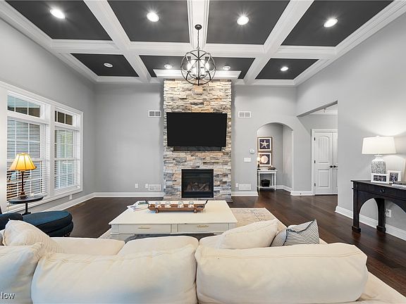 Waterfront luxury custom ranch in North Canton’s Sanctuary Allotment — Built by AC Construction. No expense was spared from the coffered great room ceiling to the wood flooring throughout! A dream custom kitchen with large quartz island and counters, beautiful craftsmanship throughout with every detail. The lower level is ready and roughed for a Jack and Jill bath and you could easily finished additional bedrooms with the full egress windows! The lay out is perfect with the high ceiling, the possibilities are endless! Discover your dream home in the highly sought-after Sanctuary Allotment in North Canton. Crafted by AC Construction, this stunning custom-built ranch blends elegance, comfort, and natural beauty, offering an unparalleled living experience.