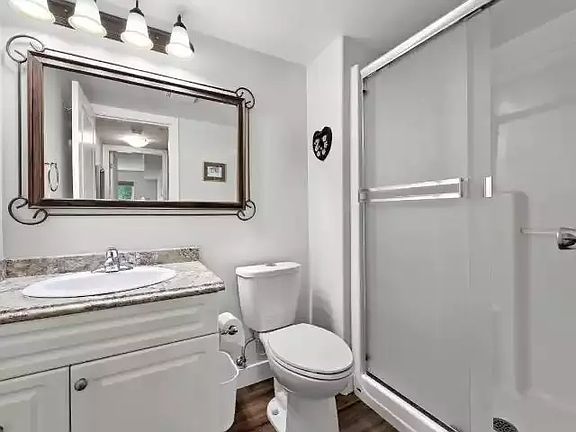 Open floor plan with large kitchen, modern cabinetry, quartz countertops and upgraded appliances. This 2nd floor apartment is 1 of only a handful that offers 2 larger covered decks that look out over green space (one deck off the dining room and one deck off the master bedroom) Great floor plan offering lots of windows. Deluxe master bedroom with oversized walk in closet and spa like bathroom. Additional larger bedroom and a full four piece bath
