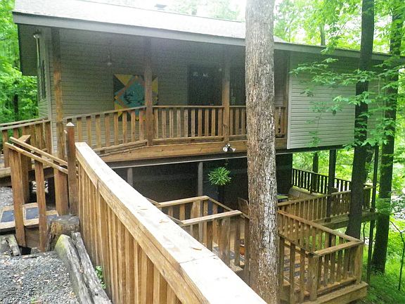 Important Note: Please do not walk onto the property or onto the porches without setting up an appointment either through your realtor or with me. I have guests here most of the time and they deserve privacy. This is not a vacant home. Also, please read this entire listing, as it should answer your questions about buying it as an income property. Lovely mountain cabin with two baths and two large covered decks. Would make a great rental or vacation home that pays for itself. Views of Chimney Rock State Park in the fall/winter and wooded privacy in the summer with the sound of the Broad River across the street. This house is in great condition. The roof was replaced in 2015 and the water heater was replaced in 2012 and both are in fantastic condition. There are new baseboard heating units and window A/C units put in throughout house. Two important notes about this house: 1) the house does not have interior stairs that connect the downstairs and upstairs, you have to use the exterior stairs to get to the bottom level (great for privacy or for renting levels separately) and 2) this cabin is part of the Mountain Village Chalet small POA (not HOA- important distinction for lending) and has monthly dues of $125. These dues include all water, septic, trash, and landscaping/leaf blowing costs and repairs. The POA blows leaves off of the decks every week and maintains roads throughout the year. They also include free access to the washer/dryer unit in the main building. I currently rent this house as an Airbnb. You can easily find my listing on the website. For the first year, I lived on the top level and only rented the bottom on Airbnb and generated an average of $1,300/month, with a high of $1,650/month in the summer months. I now rent out the entire house and bring in an average of $1,800/month, with the summer months bringing a high of around $2,400/month. For reference, my bills on this house total about $1,160/month and include everything - mortgage, taxes, insurance, electric, internet, and POA dues. The yearly property taxes are about $890 and the yearly insurance is $474. I clean the home myself, so you would need to research and factor in cleaning costs. You could make more if you rented two levels separately. I also frequently close off dates because I do not have time to clean, so I certainly reduce income by doing so. There is separate staircase for the top level and a gravel drive that leads to staircase (see last photos). I have recent water tests, radon tests, Airbnb income spreadsheets, and all relevant deeds, disclosures, and legal information. Home comes fully furnished, but open to selling without furniture. There is a utility closet in the bathroom with a washer & dryer hookup. There is no RV parking in front of the house and, although the road is paved, it would be tough getting an RV up the steep hill to the house. I am happy to work with buyers agents and pay standard 3% commission at closing. I am not interested in a sellers agent at this time. Please call or email to set up viewing. Entry is by keypad code, so I can simply give you the code and you and your agent can take a look when no guests are staying. Thanks for looking!
