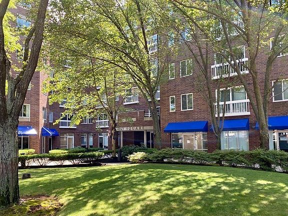 This third floor corner residence at Bay Square has fabulous natural light with treetop views of the front courtyard down Mass Ave toward HS. It has a marquee location at the front of the building with close access to the elevator and laundry. This 2 bedroom condo has 2 full baths and features an open plan with a spacious entry foyer and generous closet space throughout. The main bedroom has a bathroom en suite and a walk-in dressing room closet. This desirable building features an outdoor pool and adjacent sundeck plus a common garden/patio area, and a well equipped fitness center with locker rooms, showers and sauna. The generously proportioned lobby has ample visitor seating with outdoor views and the advantage of a 24/7 concierge to welcome you. The upper ground floor garage space is convenient to the elevator plus there is bike storage and on-street parking. A concierge building with underground parking, a pool and gym and close to the Square? A rare find!