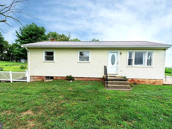 This move-in ready ranch-style home is a rare gem, nestled in a private rural area with stunning countryside views. Major updates include a newer roof, HVAC system, well pump, water heater, and more, ensuring peace of mind. The main level features fresh paint, new crown molding, drywall, trim, and hardwood floors throughout. The bright living room, with large windows, offers a cozy space perfect for relaxing or entertaining. The open-concept kitchen and dining area have new butcher block countertops, sink, dishwasher, and stove. Sliding glass doors lead to a stunning brick patio, ideal for summer barbecues and evening relaxation. A new shed provides ample storage for outdoor essentials. The main level also includes three bedrooms and a newly renovated full bathroom. The walk-up basement holds incredible potential, whether you envision it as a second living area, home gym, office, or whatever your heart desires. With rough-in plumbing for an additional bathroom, it offers flexibility and the opportunity to expand your living space to suit your needs. This home seamlessly blends modern updates with classic charm, making it a tranquil and private retreat.