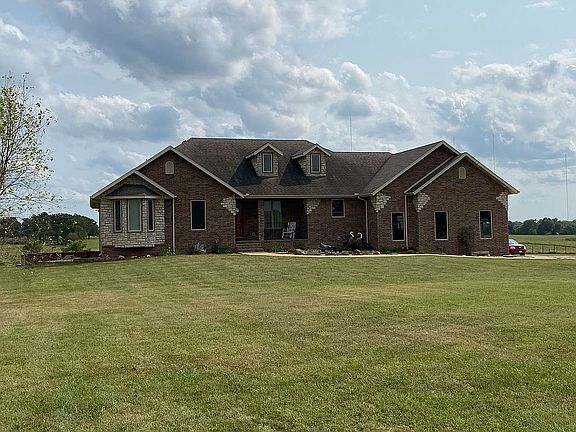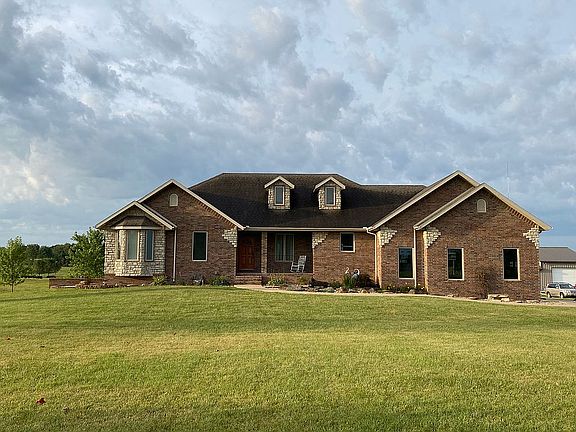 This 6 bedroom, 4.5 bath all brick home is located just south of Ozark on 13.98 acres. Home was built in 2009 with the basement finished 2014. The home has 10' ceilings in the upstairs living room and 9' ceilings throughout. Two full kitchens with gas or electric hookups, the upstairs kitchen has walk in pantry. Pellet stove in the upstairs living room. Tankless on demand hot water heater, hot water recirculator, water softener, as well as duel fuel zoned HVAC system (separate units for each floor). The home is constructed with all 2x6 exterior walls. Hardwood upstairs, tile in the bath and laundry, carpet in the bedrooms. Downstairs has tile in the kitchen and bath with carpet in the bedrooms and living room area. Multiple storage areas. All bathrooms and bedrooms have full sound batting in each wall, as well as sound batting between the first and second floors. The property has 2 ponds, orchard, blueberry bed, raspberry and blackberry beds, 2 asparagus beds, grapes, small barn, high tunnel frame for the garden area, 1 car workshop that is 1815 sq ft total with electric, water, cement floors, 2x6 frame insulated walls, bathroom, utility sink, and heat.