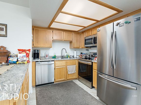 Sitting on your balcony with a cup of coffee watching the sun rise over the mountains sounds wonderful. The condo is located at the back of the complex located away from traffic. The near 1200SF unit has an open floorplan great for entertaining. Even if you aren't the Pampered Chef you will appreciate the SS appliances: frig (w/ice maker), flattop stove, dishwasher and microwave. Don't miss the full size washer and dryer (2 yrs) in the hallway. Spacious bedrooms on the top floor allow you to open the windows at night. Newer neutral carpet and ceramic tile will compliment your furnishings. Also: 1 reserved covered parking space just steps from the unit and a ground floor storage unit (5x8') for the "stuff". This building has 4 units.