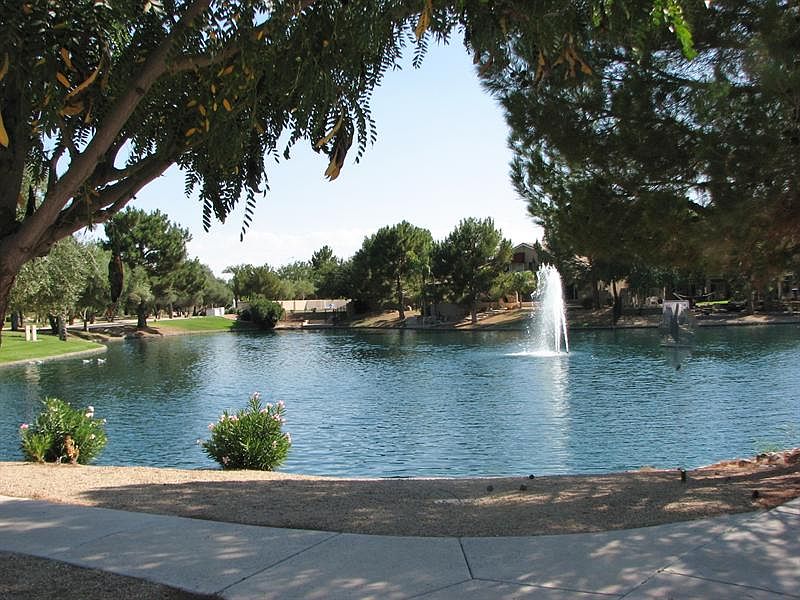 Scenic lake-views, CDS lot and private-feel add to the charm of this home. Move-in ready, fresh exterior paint, hardwood and tile floors. Step-down entry to the 1st floor BR-BA guest suite across from a den-office; straight ahead to flex-space formal DR w/ conversation area (or C/B game rm, or comfortable LR w/ piano space....). Modern kit has granite slab counters, glass backsplash, stainless appliances, micro, gas stove, pantry, and lrge brkfst area w/ bay window rear yrd view. Kit opens to spacious FR featuring gas frplce w/ marble surrounds and French doors to the patio. Up Mstr suite has French doors to a deck with peaceful green and lake views. Deep rear yrd has brick patio, shady trees, and grass. Close to schools, Chandler Mall, Price Corridor, quick access to 101 Frwy its perfect!